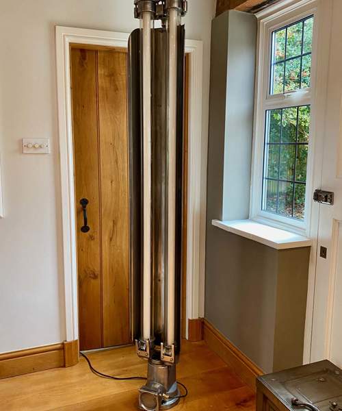 Due to the age, the listed building status of the property and the fact that English Heritage were overseeing the project, it meant that many different options of reclaimed items needed to be purchased for English Heritages’ final approval for use in the house. John therefore rented a small warehouse in Teddington, close to the project, to store all the varied reclaimed goods, such as beams, joists, flooring, doors, ironmongery and his favourite items, antique cast iron radiators.